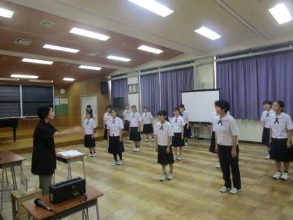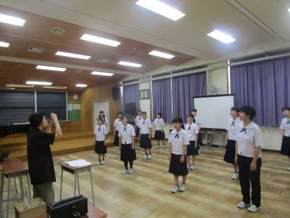 音楽部演奏披露 公開日 2023/07/24 更新日 2023/07/24 学校だより 音楽部が8月8日に行われるNHK音楽コンクールで歌う曲をオンラインで全校生徒に聴いてもらいました。部長さんからは最高のパフォーマンスができるよう頑張りますとの力強い言葉がありました。