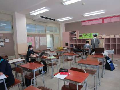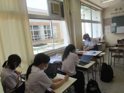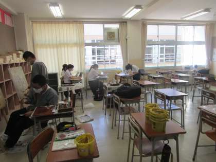 7月25日(火)午前 美術室が冷房が入らないため、美術部は冷房の効く教室で作品制作に励んでいました。