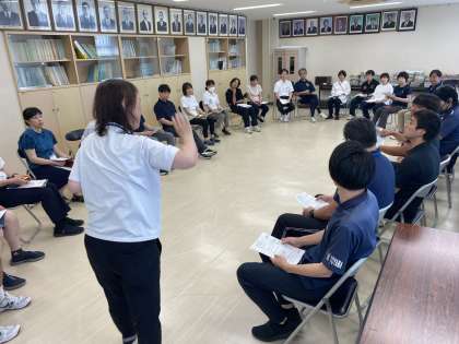職員研修会 公開日 2023/07/28 更新日 2023/07/28 学校だより 7月26日(水)午後 職員研修会を行いました。 道徳科の授業の進め方と、生徒の命を救うための教員の連携について、実際の場面を想定しながら研修をしました。