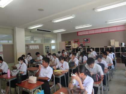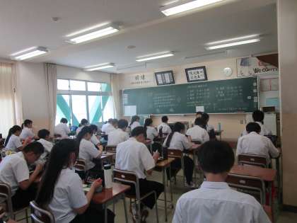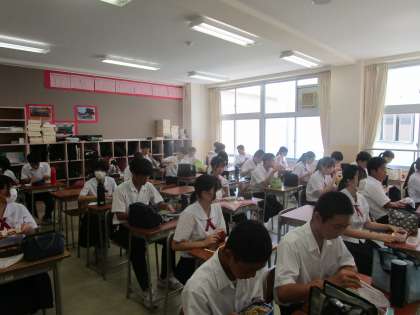 午前中の4教科が終わり、お弁当を食べています。5限は最後の数学のテストに挑みます。