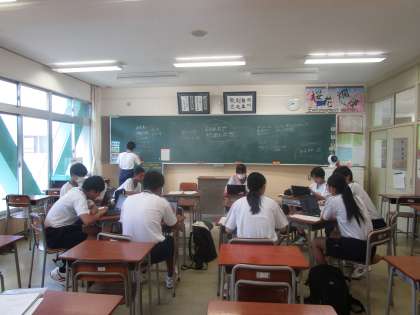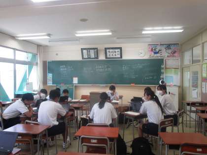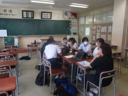 クロムブックが大活躍 公開日 2023/08/23 更新日 2023/08/23 3学年 団演技の構成を決めるのにダンス決めにクロムブックで今流行のダンスやテーマに沿った曲をクロムブックを使って動画を見ながら相談しています。これがいい、あれがいい、難しいかもなどと意見が飛び交っていました。体育大会への意気込みが感じられました。