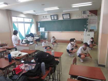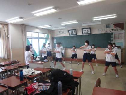 体育大会3年リーダー団活動3日目 青龍団 その3 公開日 2023/08/25 更新日 2023/08/25 3学年 団演技の流れを確認して繰り返し練習しています。動きもさまになり、格好よく踊っています。