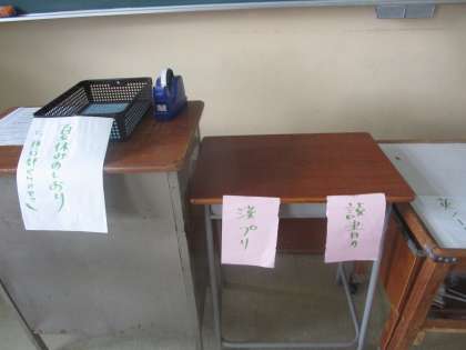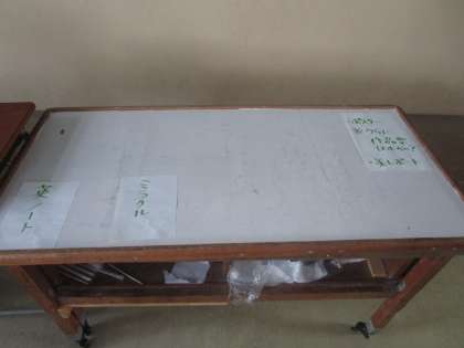 8月28日(月)、各クラスの黒板に日程やメッセージ、回収物の準備がされていました。