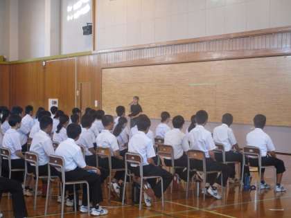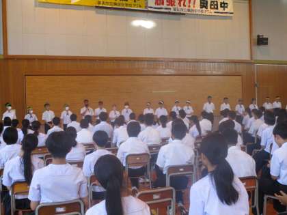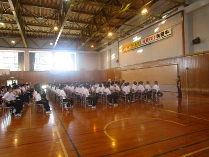 2学年学年集会 公開日 2023/08/29 更新日 2023/08/29 2学年 8月29日(火)1限 2年生は2学期はじめの学年集会をしました。学習面や生活面、後期より生徒会の中心となっての活動、体育大会の実行委員、団リーダーの紹介、体育大会や合唱コンクールなどの行事への取り組みなど実り多い2学期になるよう担当の先生等から話がありました。暑いので水筒も持参して行いました。