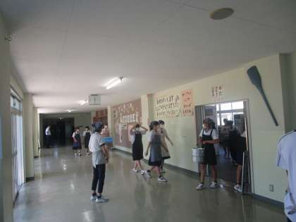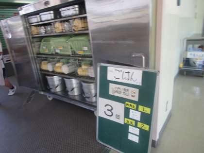 給食配膳室前の様子 公開日 2023/08/29 更新日 2023/08/29 学校だより 2学期の給食がスタートしました。北給食センター等から給食が届けられ、給食搬入員2名の方で準備、後始末をしていただいています。2学期も北給食センターの方々、トラックでの搬入していただく方、食材を作っていただいている業者の皆様、そして、給食搬入員の方々には2学期もお世話になります。よろしくお願いします。