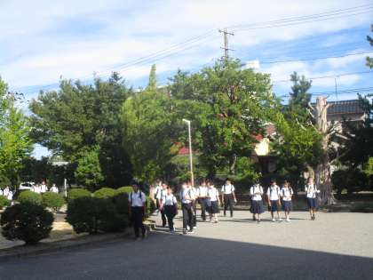 暑い日が続いています。人混み、公共交通機関を除いて、熱中症予防の観点からマスクをはずすよう学校でも指導しています。ご家庭でも声かけお願いします。リュックの荷物も軽減し熱がこもらないようにしていますのでよろしくお願いします。