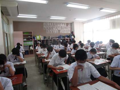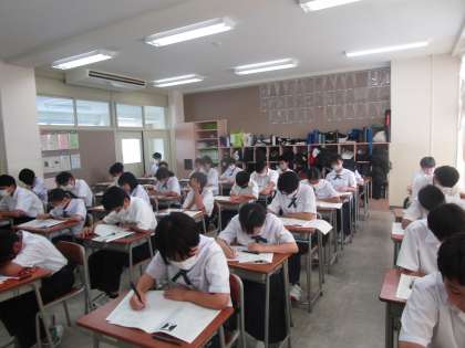 2限は国語のテストでした。写真は1年4組のテストの様子です。