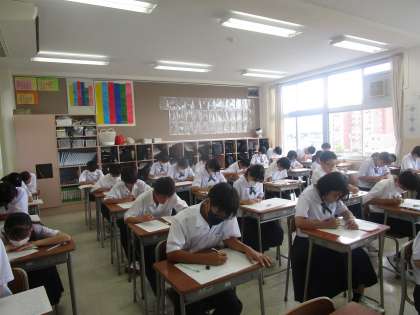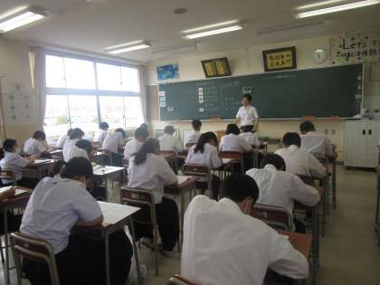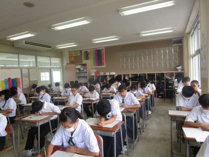1年生の4限のテストは、英語でした。写真は1年5組の様子です。