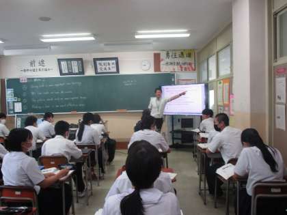 8月31日(木)1限 3年4組の英語は、画面で確認しながら文法など確認していました。