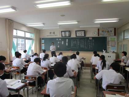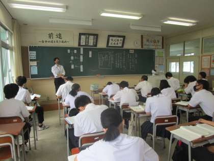 3年6組で国語の教育実習の先生が頑張っていました。故郷の学習で「作品の設定を捉え、登場人物の関係性を整理しよう」という課題で生徒に発問しながら学習を深めていました。