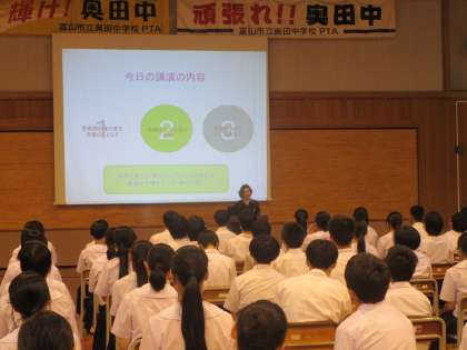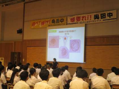 3年生 産婦人科医による「いのちと性に関する講演会」 公開日 2023/09/07 更新日 2023/09/07 3学年 9月6日(水) 産婦人科医による「いのちと性に関する講演会」を行いました。 思春期の体の変化、妊娠成立の仕組み、性感染症ってどんな病気についてお話をいただきました。自他の心身の健康や「いのち」を尊重し、適切な判断や責任のある行動ができるよう過ごしてくれることを願います。