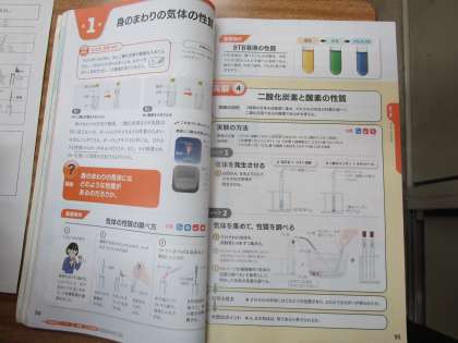 1年3組の理科は、「身のまわりの気体は、どのような性質があるのだろうか」という課題で学習していました。性質の調べ方について教科書や画面で確認していました。