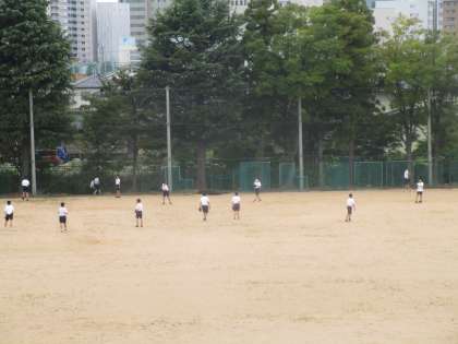 3年1組、2組男子保健体育 公開日 2023/09/08 更新日 2023/09/08 3学年 9月8日(金)1限 3年1組、2組男子の保健体育もグラウンドで心地よい天候の中、ソフトボールの学習をしていました。