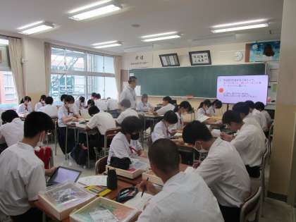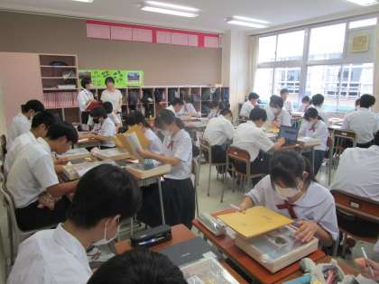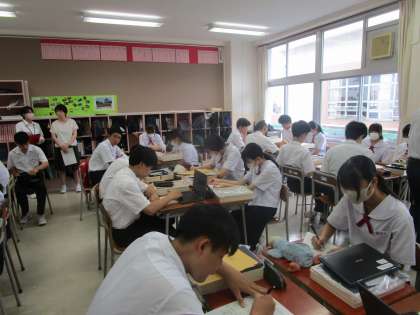 3年5組 美術 公開日 2023/09/08 更新日 2023/09/08 3学年 9月8日(金)1限 3年5組の美術は、アッサンブラージュの制作に向けてグループで悩みを共有してよりよい作品に向けてアドバイスしたりしていました。