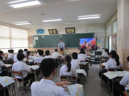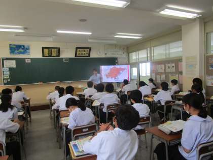 9月11日(月)4限 1年1組の社会は、アジアについて学習していました。地図で東アジアなど確認していました。