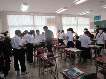 1年5組の英語は、ALTの先生の授業でした。友達3人に好きな教科と得意なことをインタビューしていました。どんなインタビューが聞けてのでしょうか。