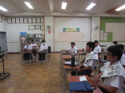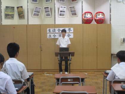 9月13日(水)5限 選挙管理委員の司会、運営で第1音楽室からリモートで立会演説会が行われました。