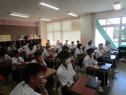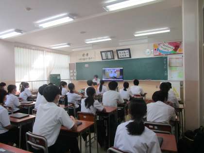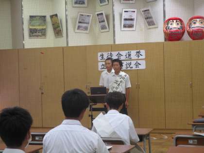 各教室のテレビでリモートで、推薦者の演説、立候補者の演説を全校生徒が聴きました。