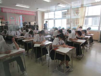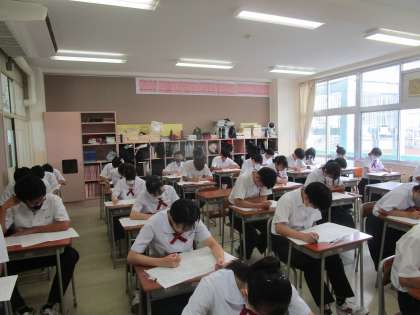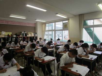 9月14日(木)1限 3年生は、確認テストを3教科行います。1時間目は国語のテストの様子です。
