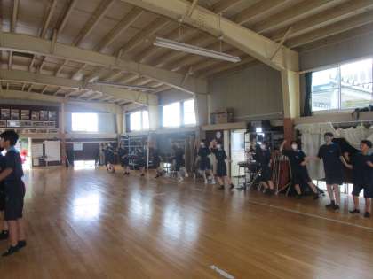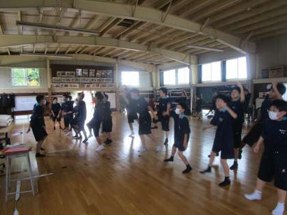 1年2組 保健体育 公開日 2023/09/14 更新日 2023/09/14 1学年 9月14日(木)5限 1年2組の保健体育は、武道館でダンスをしました。みんなでジャンボリーミッキーを踊りました。体育大会に向けて先輩方と団演技してくれることを願って、特別に1時間、1年生にダンスの楽しさを体感してもらうために行いました。それぞれの団で先輩と思い出に残るダンスにしてくれることを期待しています。