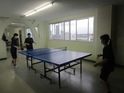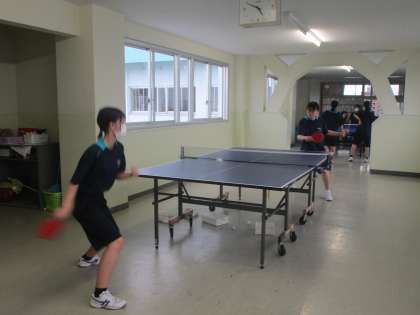 大会前日の練習 女子卓球部 公開日 2023/09/14 更新日 2023/09/14 部活動 9月14日(木)放課後 女子卓球部が4階廊下で頑張っていました。顧問の先生がサーブについて指導してくれていました。ダブルスの練習など頑張っていました。掲示板に書いてある目標をぜひ達成してください。
