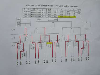 女子も15日東部中学で大沢野中学校と対戦、16日、2000年体育館で新庄中学校と対戦。勝利し、17日、2000年体育館での準決勝へと駒を進めました。