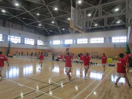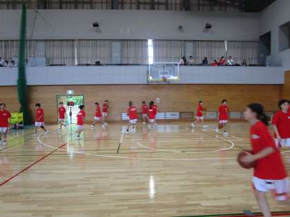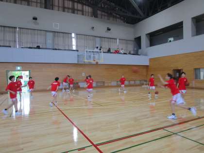 女子バスケットボール部 準々決勝に向けてのアップ 公開日 2023/09/17 更新日 2023/09/17 部活動 16日(土)準々決勝の試合前のアップです。チームカラーの赤のTシャツがコートを動き回っています。