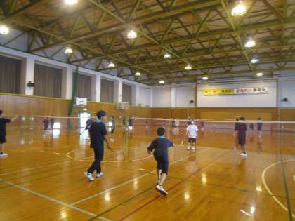 1年4組 保健体育 公開日 2023/09/19 更新日 2023/09/19 部活動 9月19日(火)2限 1年4組の保健体育はバドミントンでした。「いろいろな人とダブルスを組んでラリーやゲームを楽しもう」という課題で学習しました。1年4組は男女仲よく男女混合でも楽しくやっています。日本代表のワタガシペアのようです。