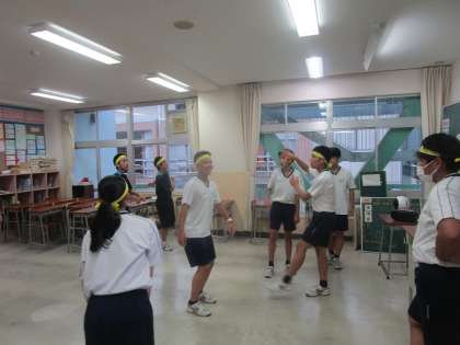 9月21日(木)放課後 笑顔でダンスの確認をしていました。1・2年生のリーダーが一生懸命覚えていました。