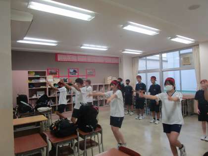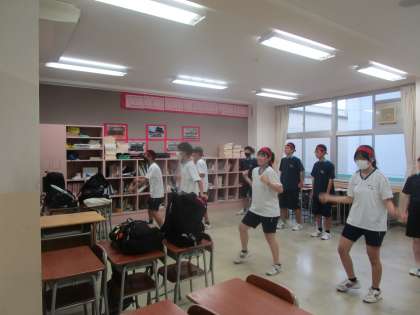 9月21日(木)放課後 赤豹団も3年生がダンスを見せて、1・2年生が後ろで真似して覚えていました。