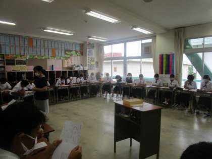 2年2組 国語 公開日 2023/09/22 更新日 2023/09/22 2学年 9月22日(金)1限 2年2組の国語は、「モアイは語る」の学習で図式化したワークシートを回し読みしていました。友達の図式化を見てイメージを膨らませていました。