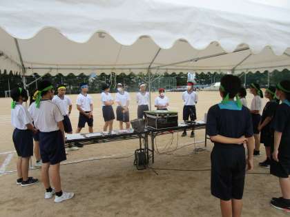団活動反省会 公開日 2023/09/22 更新日 2023/09/22 生徒会 2時間の団活動を終えて、本部前に団長が集合し、実行委員会からの話、アドバイス、生徒会顧問の先生からの話などがありました。