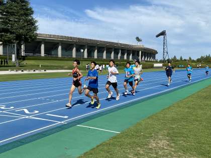 9月30日(土)に行われる県中学校駅伝競走大会に向けて、振替休業日も練習に取り組んでいます。チーム全員で切磋琢磨しながら、競技場でタイムトライアルをしました。駅伝大会まであと1週間。コンディションを整えて、当日に臨みます。応援よろしくお願いします!