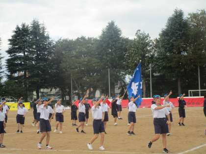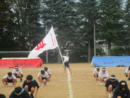 体育大会見どころ 旗手 公開日 2023/09/28 更新日 2023/09/28 生徒会 団リーダーの3年生の中に旗手がいます。旗手が団演技の中で旗を振ったり、回したり、旗を持って走ったりします。今年は旗は風圧で重いのですが女子の旗手もいます。注目ください。