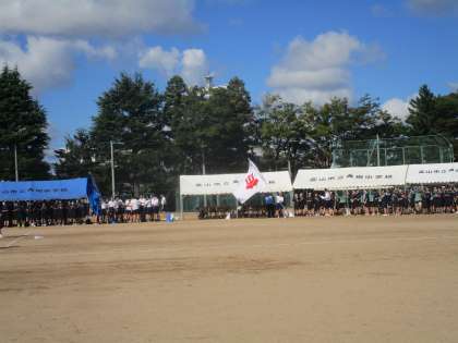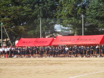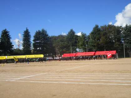各団、団席前に並び、熱い応援が繰り広げられています。