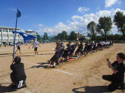 最後の競技となり、力をふりしぼり頑張っています。団席も思いきり援しています。