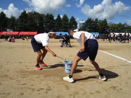 ひしゃくを持って高速で走る生徒、一挙に水をペットボトルに注ぐ生徒、慎重に水を注ぐ生徒、性格が分かります。