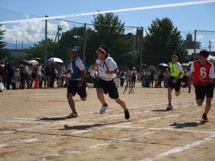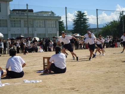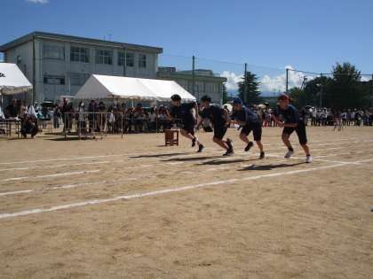 1年生から3年生まで男女でつなぐ総合リレー、各団の精鋭が競い合いました。