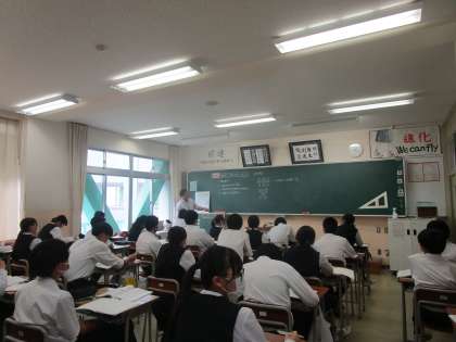 3年3組の数学は、「相似な三角形を見つけよう」という課題で学習していました。