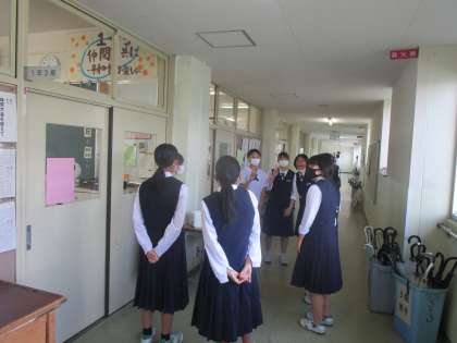 1年3組が教室と廊下で練習していました。ALTの先生も男子に混じって歌っています。