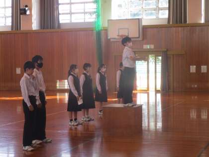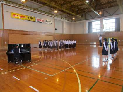 1年1組 合唱練習 公開日 2023/10/11 更新日 2023/10/11 1学年 10月11日(水)放課後 1年1組が体育館での初めての練習です。広いスペースでオーバード・ホールの気持ちで歌っています。