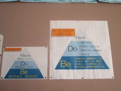 2年1組 合唱コンクールに向けて 公開日 2023/10/12 更新日 2023/10/12 2学年 2年1組の教室の背面掲示板に合唱コンクールに向けて「Be Do Haveの法則」が掲示されていました。この法則を達成したらすばらしい合唱になることでしょう。