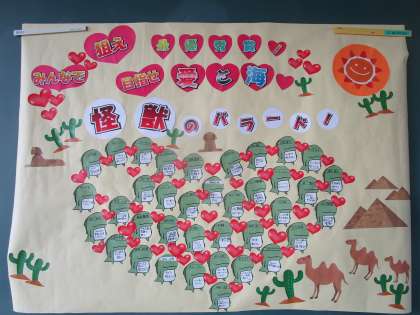 1年4組 合唱コンクールに向けて 公開日 2023/10/13 更新日 2023/10/13 1学年 1年4組の教室に合唱コンクールに向けての各自の目標がかわいい怪獣の中に書かれていました。1年4組のパワーがオーバード・ホールに響き渡ることを楽しみにしています。