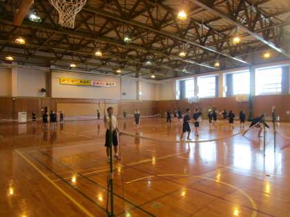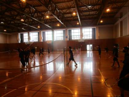 2年1組 保健体育 公開日 2023/10/13 更新日 2023/10/13 2学年 10月13日(金)5限 2年1組の保健体育は、体育館でソフトテニスの学習をしていました。バドミントンコートでボレー・ボレーの練習をしていました。柔らかいソフトテニスボールが飛び交い、楽しそうに取り組んでいます。