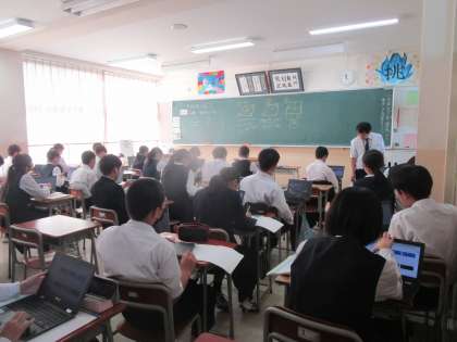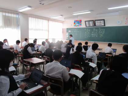 10月6日(月)4限 2年1組の数学は、図形について説明の仕組みをクロムブックを使って学習していました。