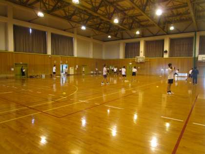 3年5組、6組男子保健体育 公開日 2023/10/16 更新日 2023/10/16 3学年 10月6日(月)4限 3年5組、6組男子保健体育は、体育館でソフトボールの学習をしていました。室内のため、バットを使わず手で投げてタイブレークの攻防を楽しんでいました。
