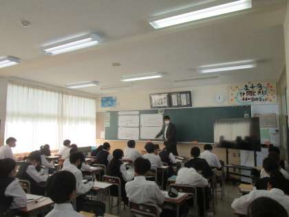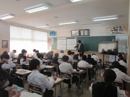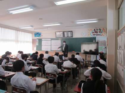 1年3組の数学は関数の学習をしていました。1つ1つ解答を確認しながら学習が進められていました。