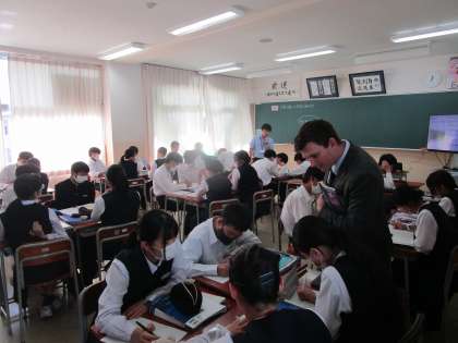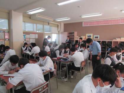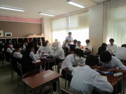 3年3組 英語 公開日 2023/10/16 更新日 2023/10/16 3学年 10月6日(月)4限 3年3組の英語は、「災害で困っている外国人を助けよう」という課題で学習していました。グループで相談しながら考えていました。ALTの先生も巡回してアドバイスしていました。