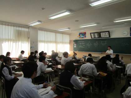 2年3組 数学 公開日 2023/10/19 更新日 2023/10/19 2学年 10月19日(木)2限 2年3組の理科は、「多角形の角の和」について学習していました。分かったかどうか生徒が挙手して確認していました。
