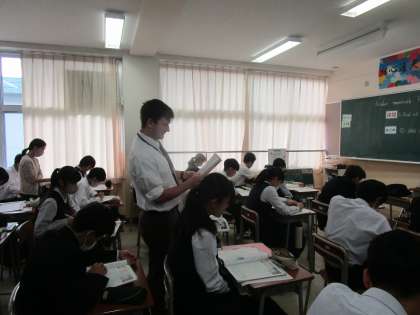 2年1組の英語は、ALTの先生と教科書の英文を読んでいました。ALTの先生が読んだ後、生徒が続けて読んでいました。
